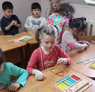 Для более старших деток, в возрасте от 3-х до 4-х лет, обучении насыщается дополнительными уроками, занятия становятся еще более разнообразными и увлекательными.