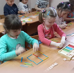 Дети 5-6 лет занимаются с педагогами и получают необходимый базовый багаж знаний, позволяющий им с легкостью начать получение в школе.